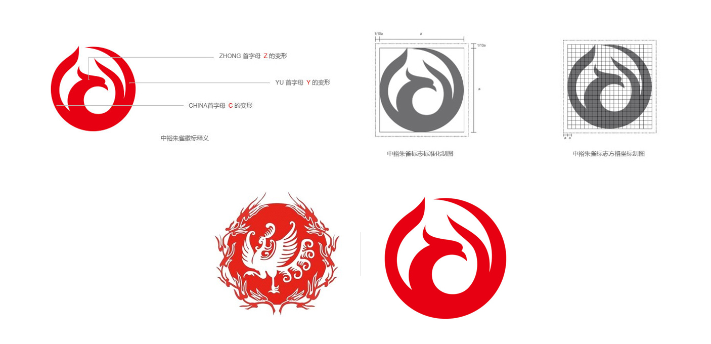 基本概念: 依然借助“朱雀是太陽鳥、火鳳凰、日精,是中國四大靈獸之一,是太陽的化身”的傳統(tǒng)文化內(nèi)涵。取其掌控能源、服務大眾、安全、恒久、吉祥、生生不息之涵義,與中裕行業(yè)性質(zhì)和企業(yè)文化相吻合。