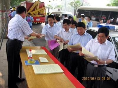 在漯河市人民政府組織的“安全生產(chǎn)月”宣傳周活動(dòng)上,漯河市人民政府副市長曹存正先生、漯河市政協(xié)副主席劉運(yùn)杰先生正在咨詢臺(tái)前閱讀安全用氣宣傳資料,就用氣安全宣傳工作進(jìn)行指導(dǎo)。