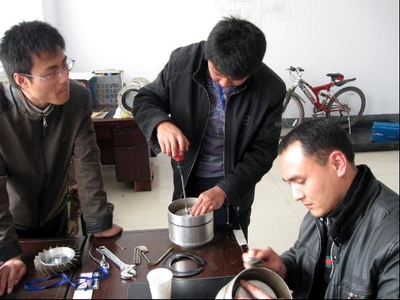 對癥方可下藥。在仔細分析了流量計表現(xiàn)出來的癥狀之后,工作人員已基本可以肯定征兆的源頭在于軸承了,下步要做的工作就是驗證這一推論、同時解決相應(yīng)問題。零件被一一拆卸下來,期間費了大家不少功夫,尤其是對“罪魁禍?zhǔn)住陛S承的拆分,這個指甲蓋大小的“精密元件”著實讓我們這幫大老爺們費了不少的勁兒,連縫衣針和水果刀都派上用場了。以至于在成功清除掉卡在軸承滾珠與軸承內(nèi)壁之間的雜質(zhì)、使其恢復(fù)正常運作之后,我們都有點不敢相信真是自己做到的。